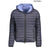 reversible jacket, navy-blue, 2 external pockets, 2 internal pockets, zip, application, logo