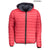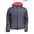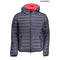 reversible jacket, blue-red, 2 external pockets, 2 internal pockets, zip, application, logo